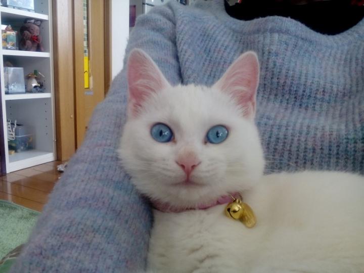 昼間は瞳孔が閉じて瞳が淡いブルーになりますね。