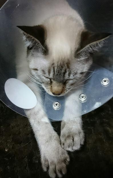 カラーがついていても元気で怒ってます、食欲もあり上手に食べてました(^^)