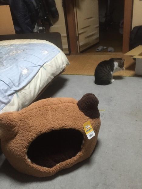 しかし、うちのにゃさんたら好奇心より警戒心が猫一倍強く、