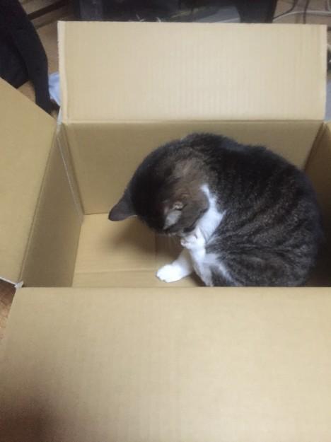 それどころか新しい猫ハウスが入っていたダンボールに入ってしまいました・・・
