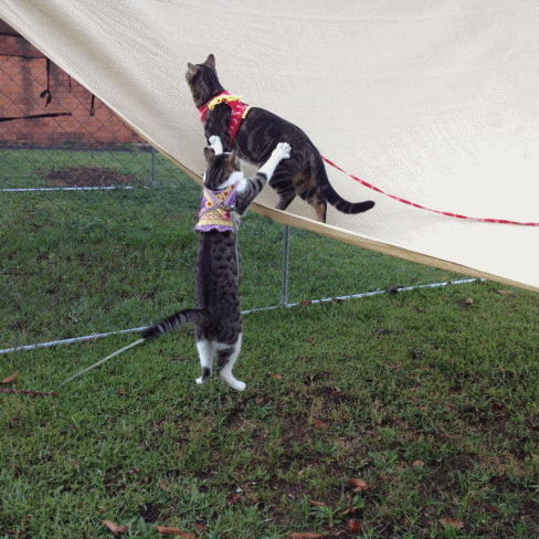 早速 新しい日課となった テント登りを始めたEuronくん。