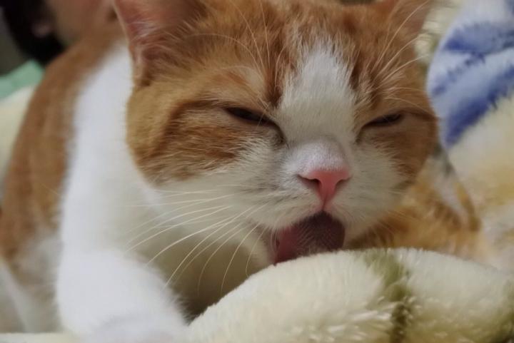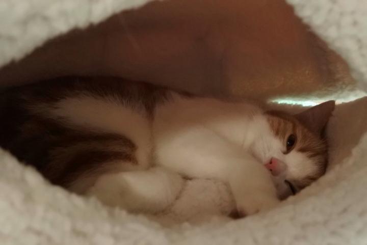 *初めてのマカロンで寝るポンちゃん