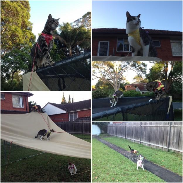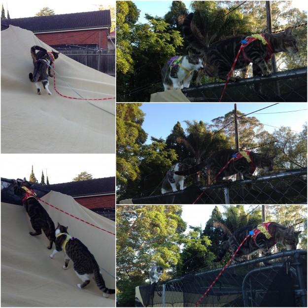 日よけテントの上で RupiさんがEuronくんを追いかけ回す・・・