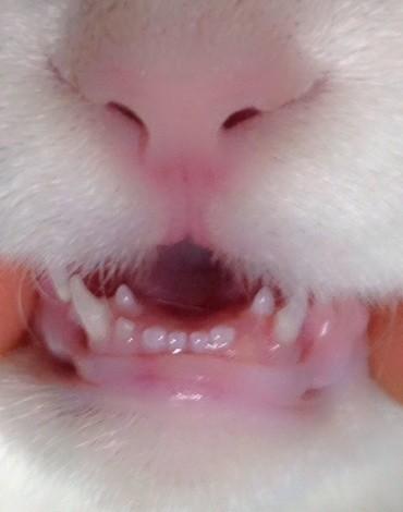 乳歯の犬歯の脇から大人の犬歯がのぞきはじめました。