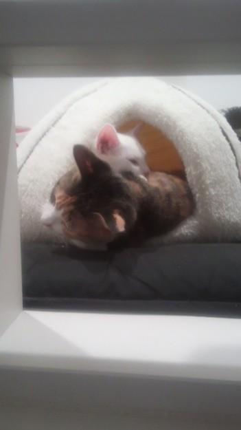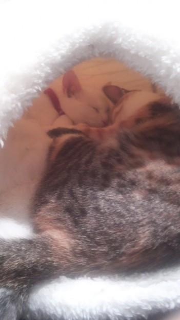 ここたそが、気持ちよさげに寝てる~ みきたそは、洗面所のマットでゆっくり