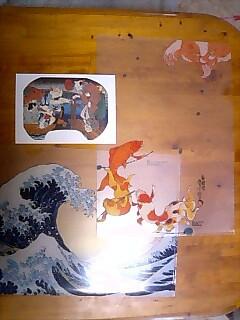 頭領は北斎の富嶽三十六景・神奈川沖浪裏を、アオリは国芳の金魚とネコのデザインのものを。