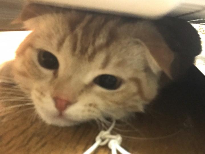 ここに入ること。ここはと言うと‥冷蔵庫の引き出しと床の間です(^^;;野菜室が一番下にあるのですが、ここを開けるとすぐに入ろうとダッシュ。そしてこのすき間に入るとしばらく出てきません。暖房をつけている部屋でもさすがに心配になるほど冷え冷えになって出てきます(^^;;入れないように対策しようかな。
