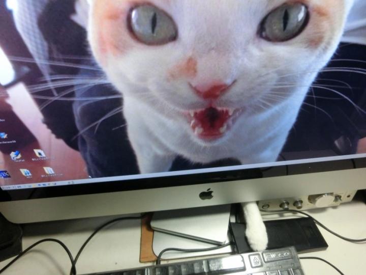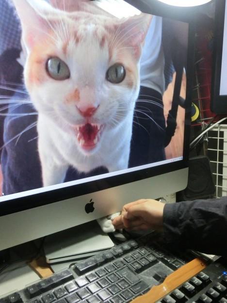 後、年末に撮れた私のヒザで雄叫びを挙げる侵略者の写真(前回日記)、妻と二人で気に入っていて、