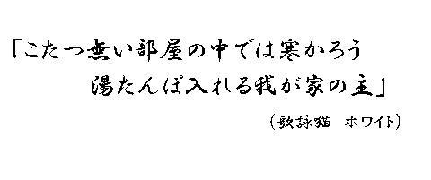 そしてそれ以来、お湯を沸かすのがゲンさんの日課になったことは言わなくても分かるよね。毎日毎日、寒い間は湯たんぽ五個作ってますよ。ご苦労さん。