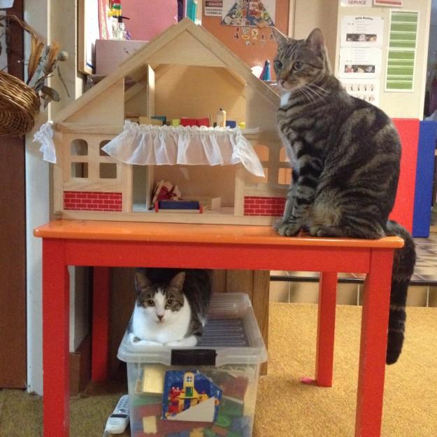 お猫さんたちにも 仕事場と行き来するのは 一日に メリハリがあって いいようです。