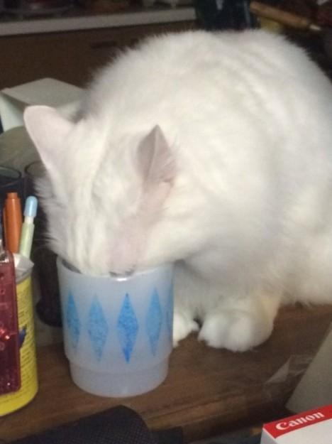 顔をつっこんで、ぴちゃぴちゃ飲んでます。