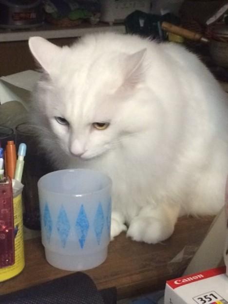 このコップ、マリーの顔がすっぽり入るジャストサイズなんです。