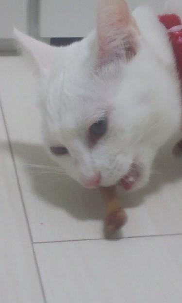 (*_*)猫も骨食べるんだね。