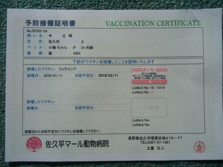 完全室内飼いの小鞠ですが先住猫のデブ猫♀が外に出るので3回目のワクチンも予定です。