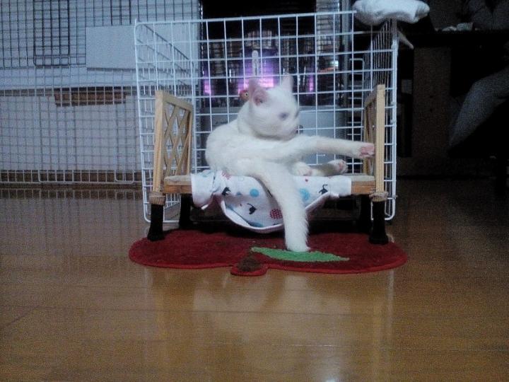 そうと言いつつ、セリアのベッドで美脚をお手入れ中です(苦笑)