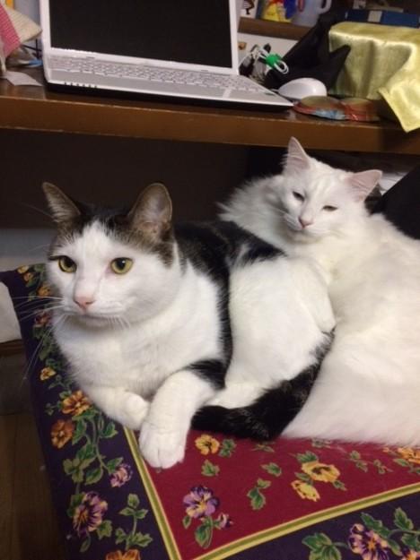 昨日は、2にゃんが、パパの背中をじーっと見つめていて、無言のプレッシャーをかけてましたよ。