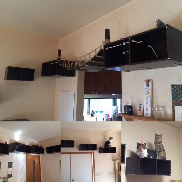 吊り橋はまだ怖さがあるみたいだけどキャットウォークは2匹ともチョロチョロと動き回ってるのでとりあえずは成功かな〜😅