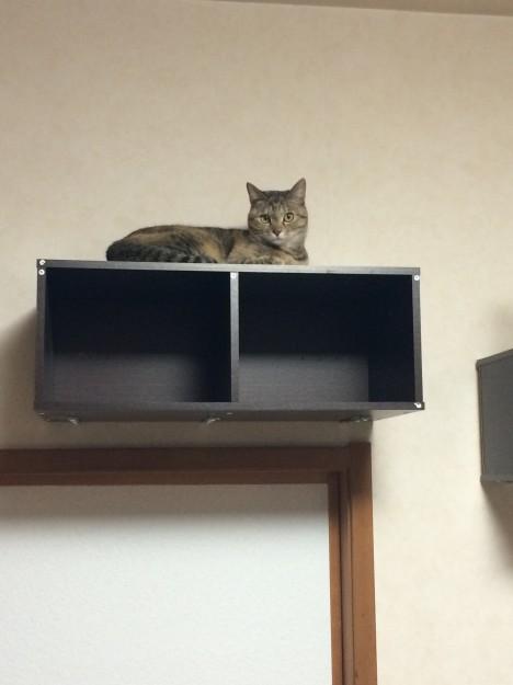 見ていいな〜と思ったのですが、買うとかなり高いのでホームセンターで安い木材を買って加工してもらいロープを通し吊り橋を作ったついでに、安いカラーボックスを使ってのキャットウォークも作っちゃいました〜😁