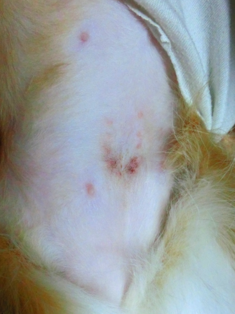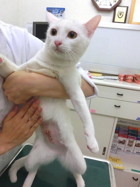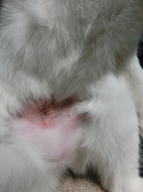 わかりづらいですがミクの抜糸後の傷跡の写真です