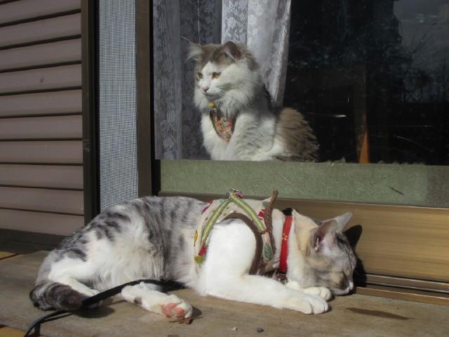 気が付けばみんにゃは日向ぼっこしてるので、おうちの中から覗いてました。