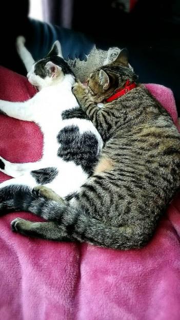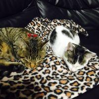 そんなメルが唯一くつろげる時間は私が仕事に行ってからかな😅誰も居なくなって静かになれる時間😊多分結構お気に入りのソファーでほとんど寝てるみたいだけど😁夜はみんなでベッドで寝てます❤メルはとっても暖かい✨☀✨昨日で5ヶ月になりました‼早くも発情期に入ってまして‼来月避妊手術する予定です‼隣にいるパパの家族が飼っているゴマととっても仲良しで同じ格好で寝てます❤笑っ