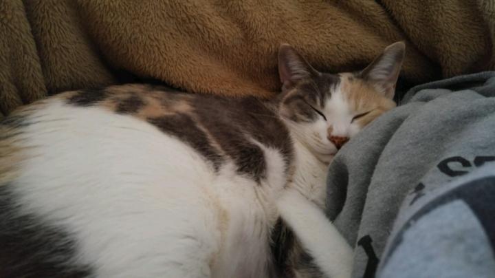 今朝、何とか布団の中へ誘い込み、ナナと数十分だけ一緒に寝ました。
