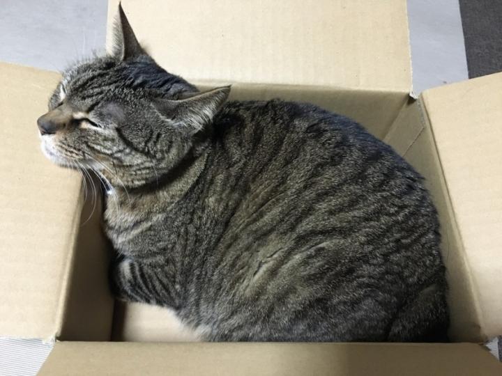 でもやっぱりダンボールの箱が落ち着くのよね〜