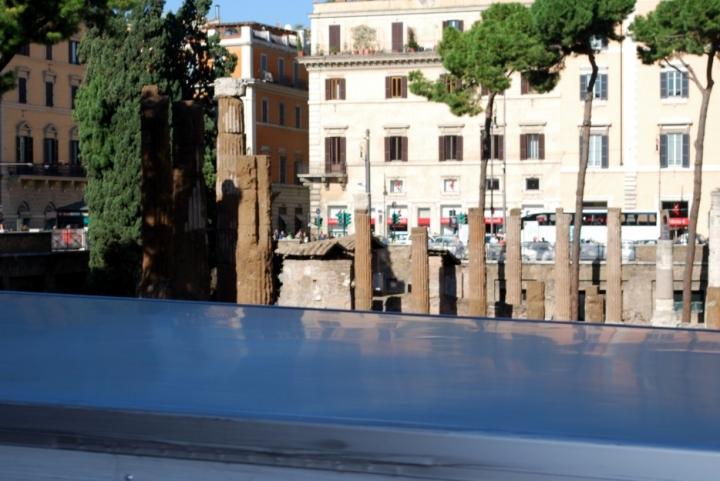 ローマの中心を走る、2階建ての観光用オープンバスより撮影したLargo di Torre Argentina