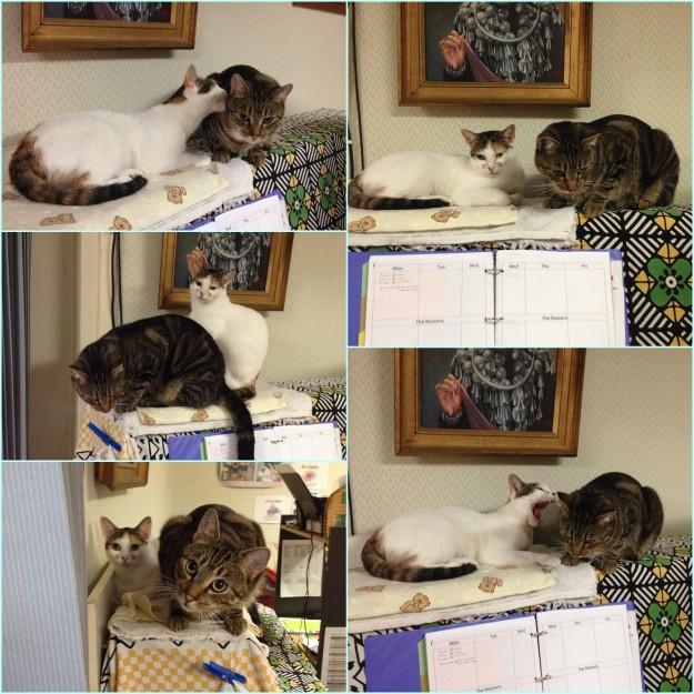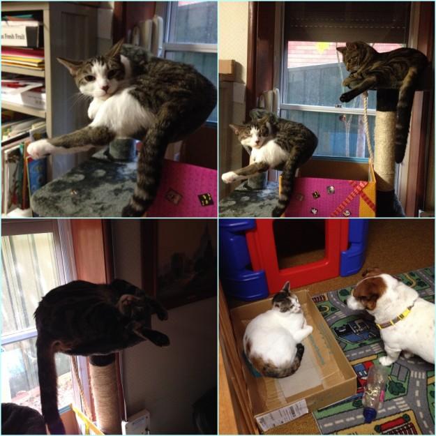 下段: バンザイ寝のEuronくん & 箱を死守したいAmiちゃん