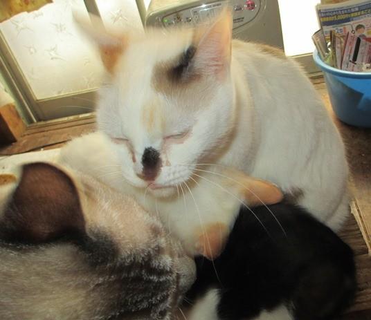 仔猫たちの面倒をよくみています。