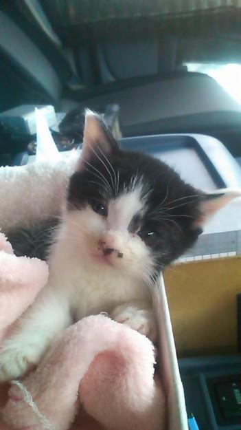この頃ほかに子猫がいなかった我が家。雨のご飯の場所はテーブルの上でした(^^)