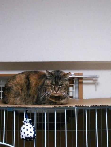 家に帰ってきてからケージの上に籠城中の姉御。今日はもう病院行かないから降りてきてご飯食べておくれ~。°(°`ω´ °)°。