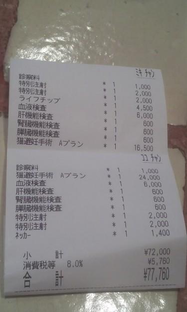 オプションをフルにした結果、みきたそは、市の補助がついているのだけど(1匹のみ補助あり)、この金額になりました。