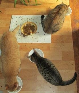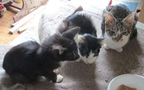 においにつられて成猫があっちこっちからやってきて食べ始めました。