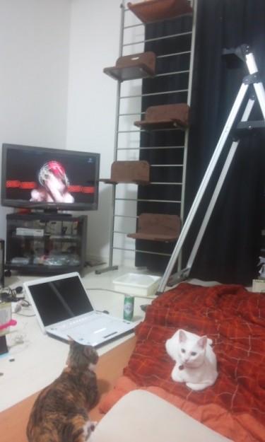 テレビを見ながら、猫を愛でるのは、至福の時間です♪