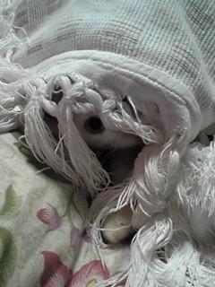 セナちゃんはいろんな遊びをしますが、一番好きなのは以前も紹介した、コタツでの隠れんぼのようです。