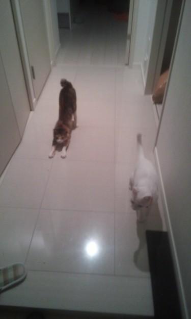 起きるまでは黙っていて、起きたら、ご飯にゃ~って来ます。