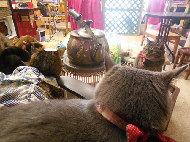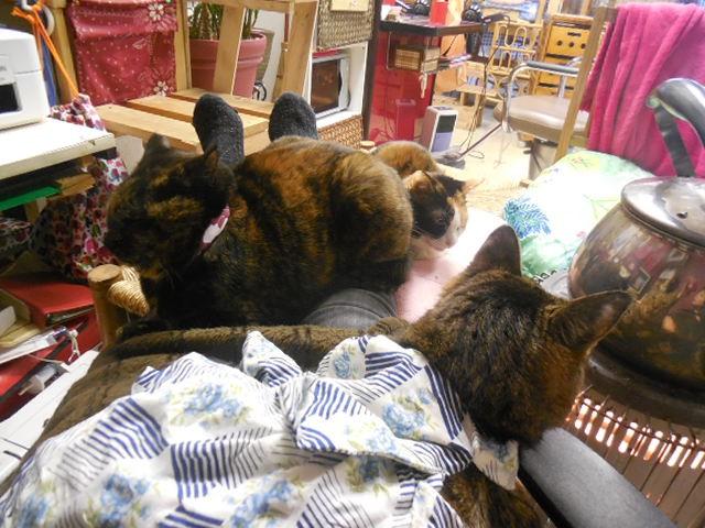 これはバイトに続けて行った日の昼間にニャンズが甘えている状態です