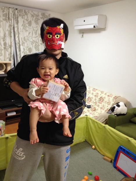 鬼のお面は一応付けて、娘の反応をみたのですが
