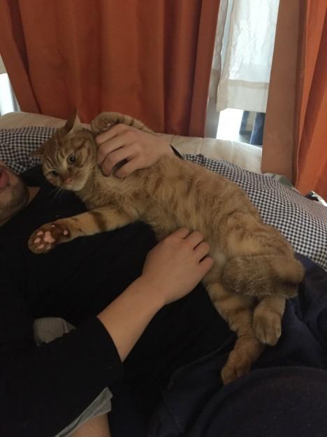 ウルのおでぶ感が最近目についてきたので、旦那さんに抱っこしてもらい写メ。うーんやっぱ太ってるよね?ヒルズしか食べてないんだけど…