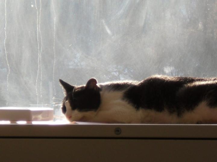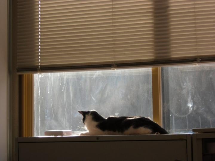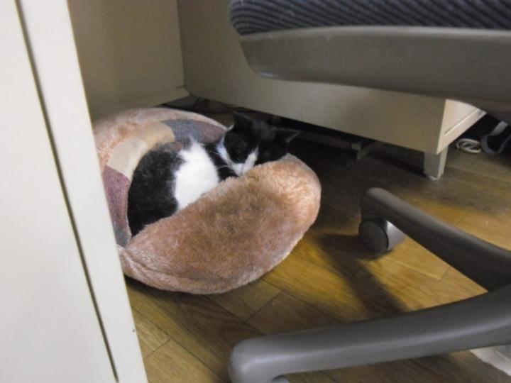 帰宅する頃には、猫らしく温かい場所を探し、、、自らサンドされています。