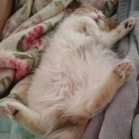 静かに眠る私の胸の上でふんふんと匂いを嗅ぎます。