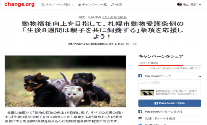 主 催:幼い犬猫を守る札幌市条例を応援する有志