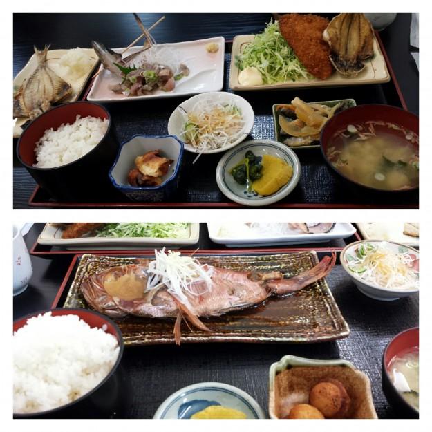 上が「アジずくし定食」、下が「金目鯛の煮付け定食」です。