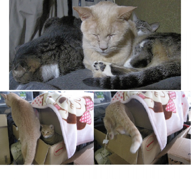 茶々。もここが自分だけの場所と思っているらしく、下手に手を出せば引っかかれます。
