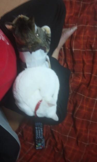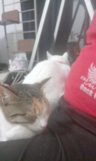 ↓2匹乗ってきて、動けな~い(>_<)