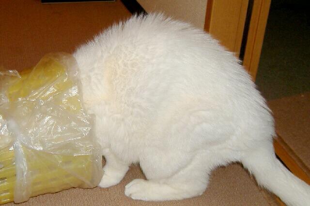 『ゴミ箱をあさる猫』