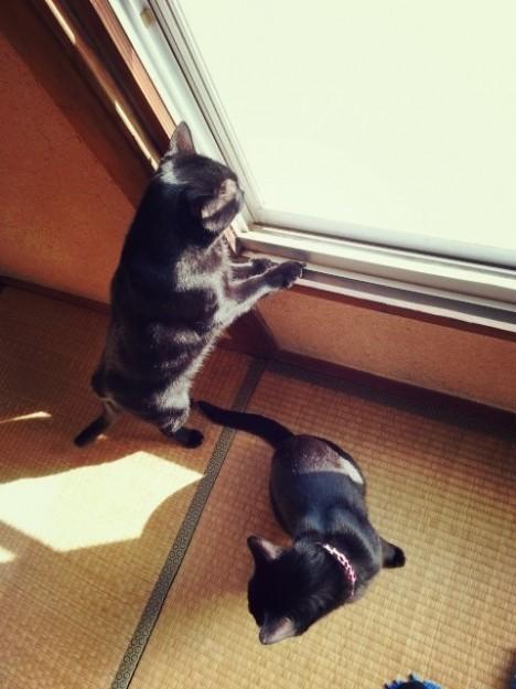 網戸にするとコタロウが真っ先に窓辺から外を眺める