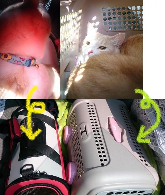フリースひざ掛けを風呂敷代わりにし包んで連れて行きました。