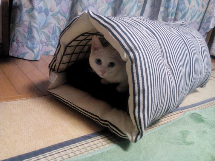 今まで丸くなって寝てましたが、これで長~くなって眠れますかお(^△^)
